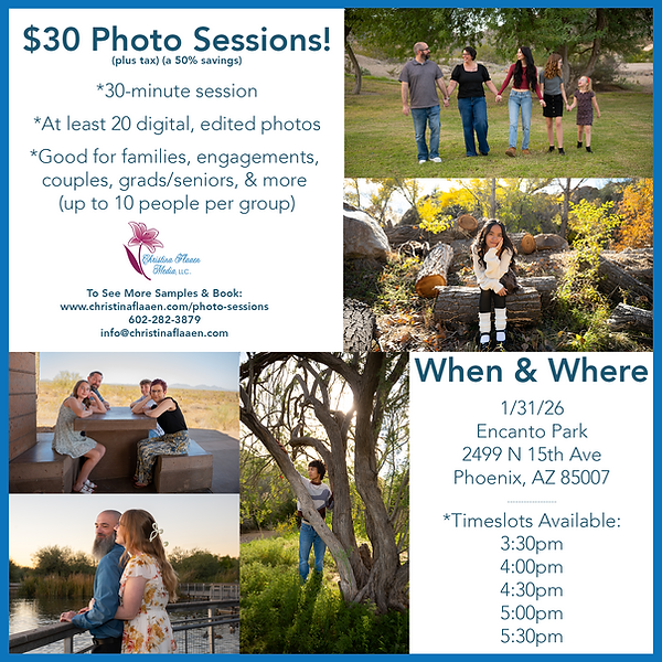 *30% of payment due upon contract signing to hold date(s), Remaining Balance due 2 days prior to photo session.
